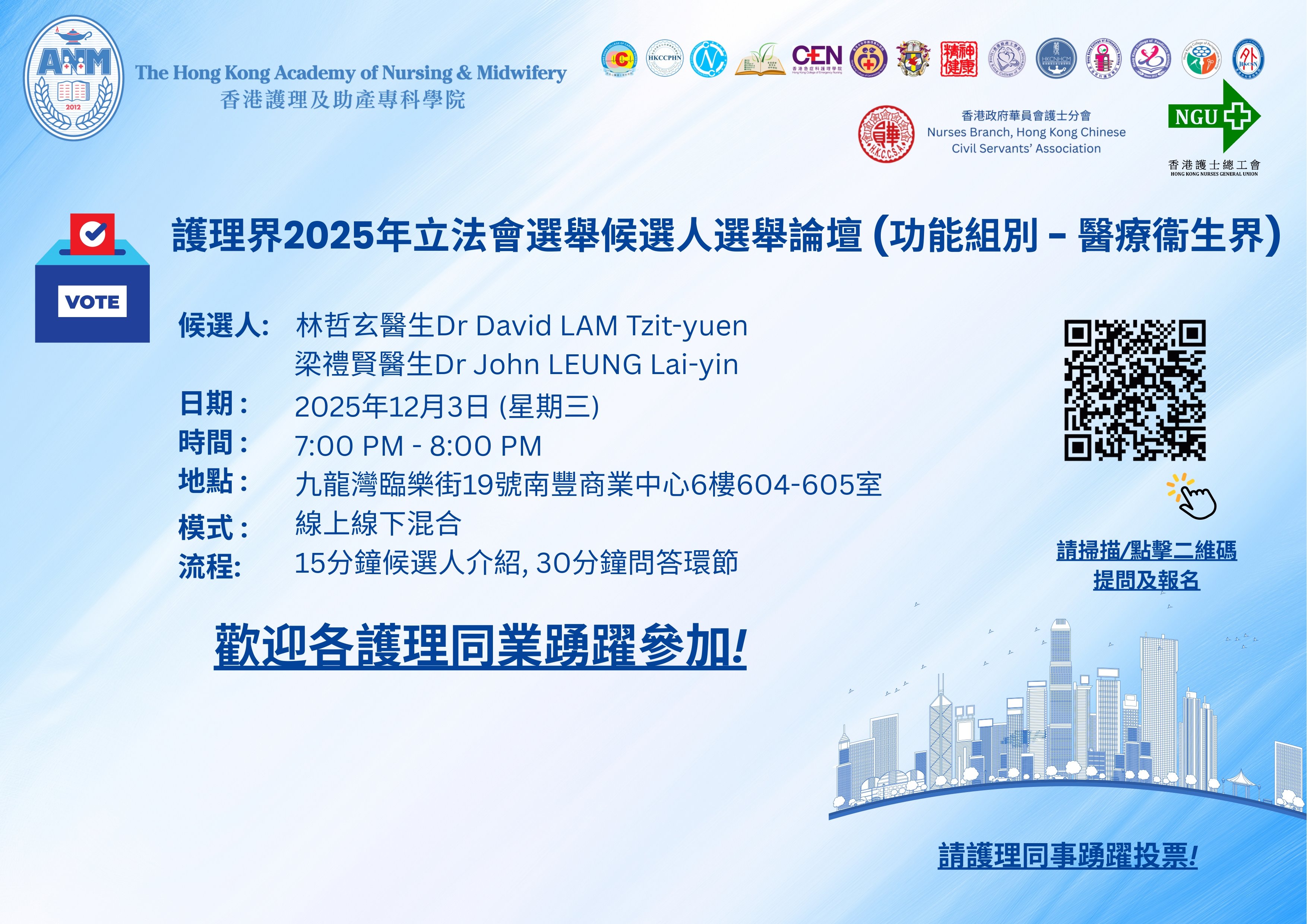 護理界 2025 年⽴法會選舉候選⼈選舉論壇 ( 功能組別 – 醫療衞⽣界 )